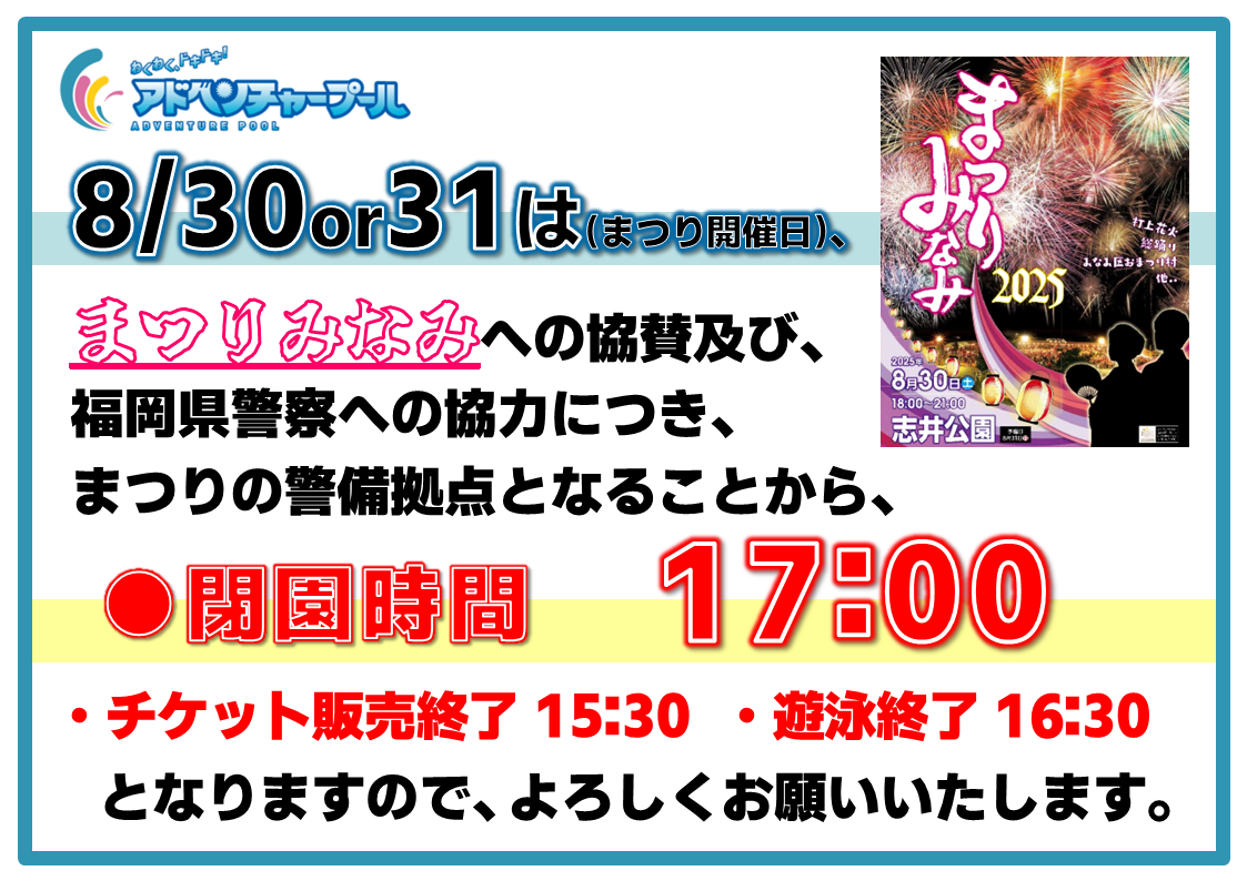 【お知らせ】まつりみなみ2025開催時の営業時間